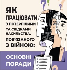 Детальніше – у брошурі "Як працювати з потерпілими та свідками насильства, пов’язаного з війною: основні поради", розробленій спільно з Офісом Генерального прокурора та Державною судовою адміністрацією України: https://bit.ly/46CUo4n