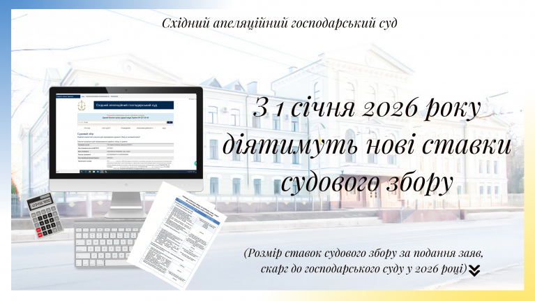 Східний апеляційний господарський суд нагадує, що у зв’язку зі зміною розміру прожиткового мінімуму для працездатних осіб з 1 січня 2026 року діятимуть нові розміри ставок судового збору.