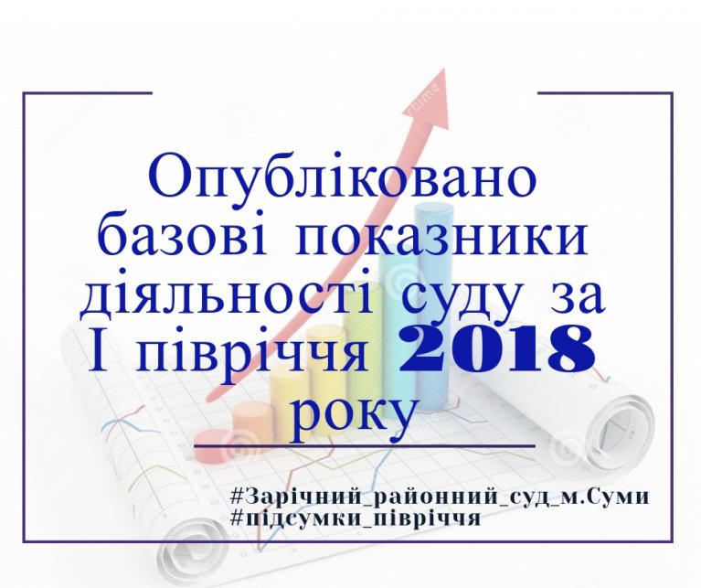 Зарічний районний суд м. Суми інформує, що на веб-сайті суду в розділі «Показники діяльності» - «Судова статистика» розміщенні базові показники роботи суду за перше півріччя 2018 року, які можна переглянути за наступним посиланням: https://zr.su.court.gov.ua/sud1805/pokazniki-diyalnosti/sydstat/2018.