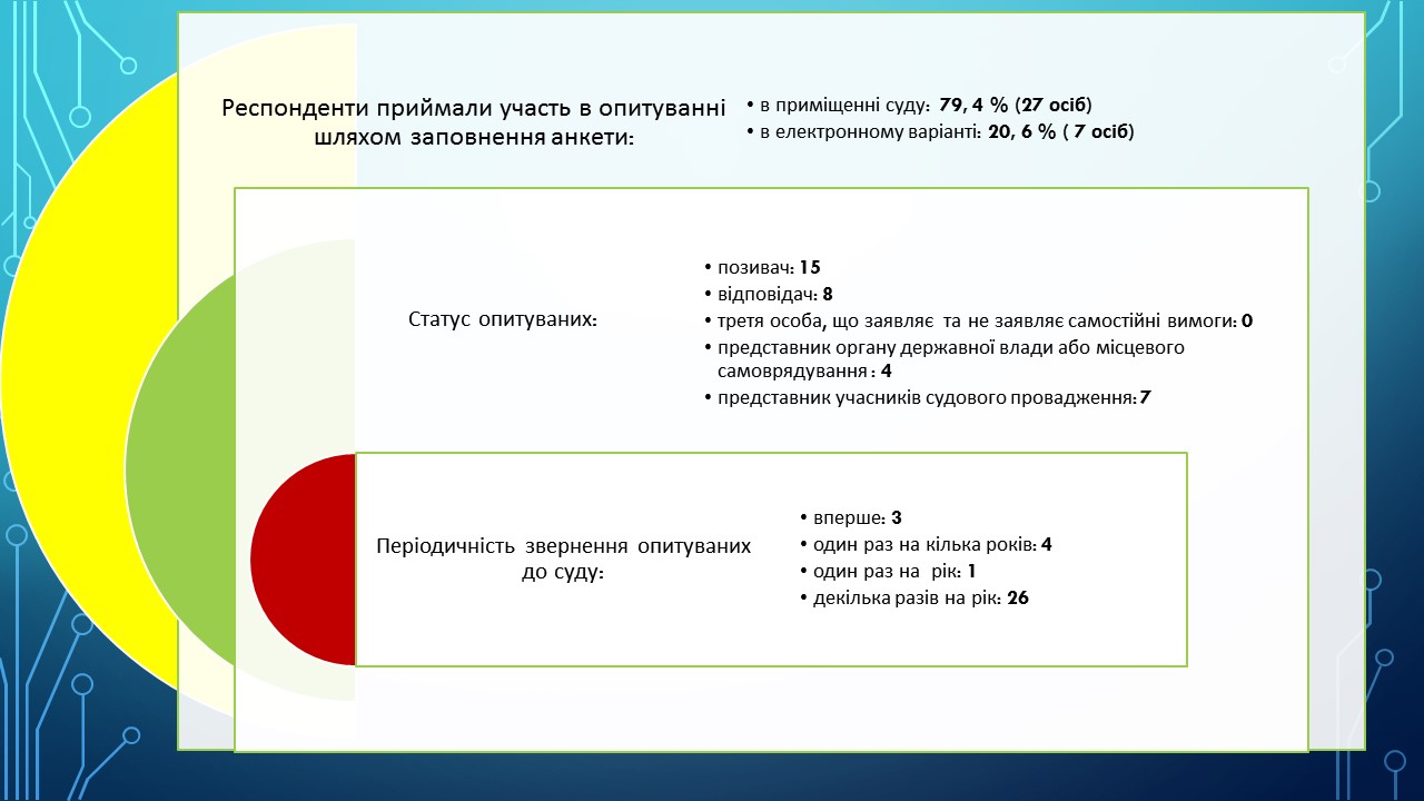 Респонденти мали можливість обрати зручний для них спосіб заповнення анкети: в приміщенні суду або в електронній формі за посиланням.