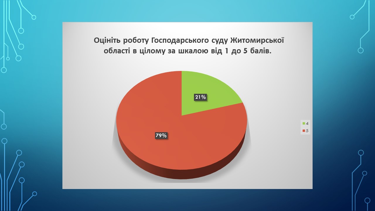 Нагадуємо, що з 04 липня по 03 серпня 2018 року в Господарському суді Житомирської області проводилося анонімне опитування громадян – відвідувачів суду.