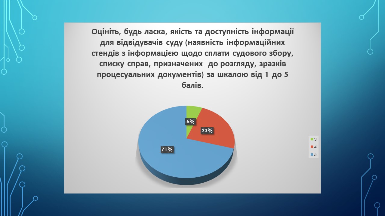 Крім того, було запропоновано надати розгорнуту відповідь на питання наявності пропозицій, зауважень, скарг щодо роботи суду, де відвідувачі зазначили свої побажання: