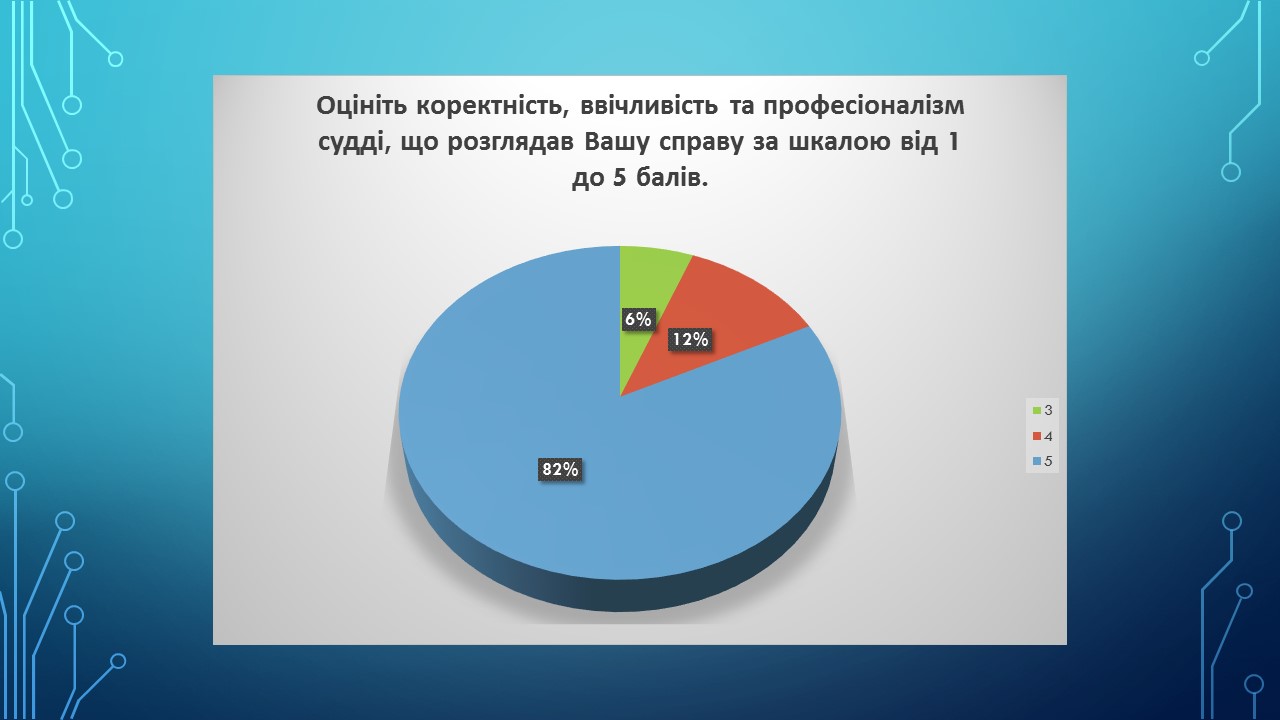 Дякуємо всім, хто приймав участь в опитуванні. Всі відповіді та пропозиції будуть надалі враховані з метою покращення роботи суду та реалізації принципу відкритості до громадськості.