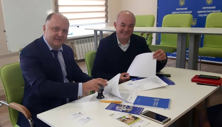 У підсумку зустрічі керівник апарату Дмитро Миронюк та Директор Центру розвитку кар’єри Олександр Карлов підписали договір про співробітництво та партнерство між Окружним адміністративним судом міста Києва та Університетом економіки та права «КРОК», який передбачає співпрацю в галузі навчально-методичної діяльності та проведення практики студентів.