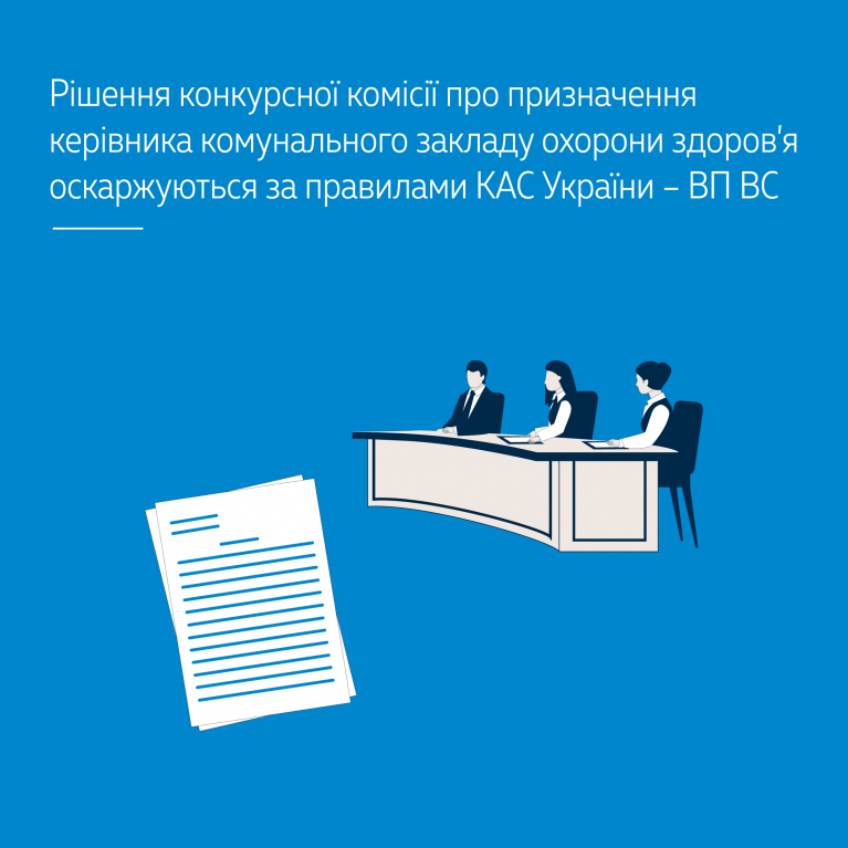 Велика Палата Верховного Суду дійшла висновку про обґрунтованість доводів скаржника з огляду на те, що питання призначення на посаду керівника комунального закладу охорони здоров’я є виключною компетенцією органу місцевого самоврядування, а рішення Комісії про призначення на посаду керівника комунального закладу охорони здоров’я є рішенням конкурсної комісії в розумінні п. 9 ч. 1 ст. 19 Кодексу адміністративного судочинства України.