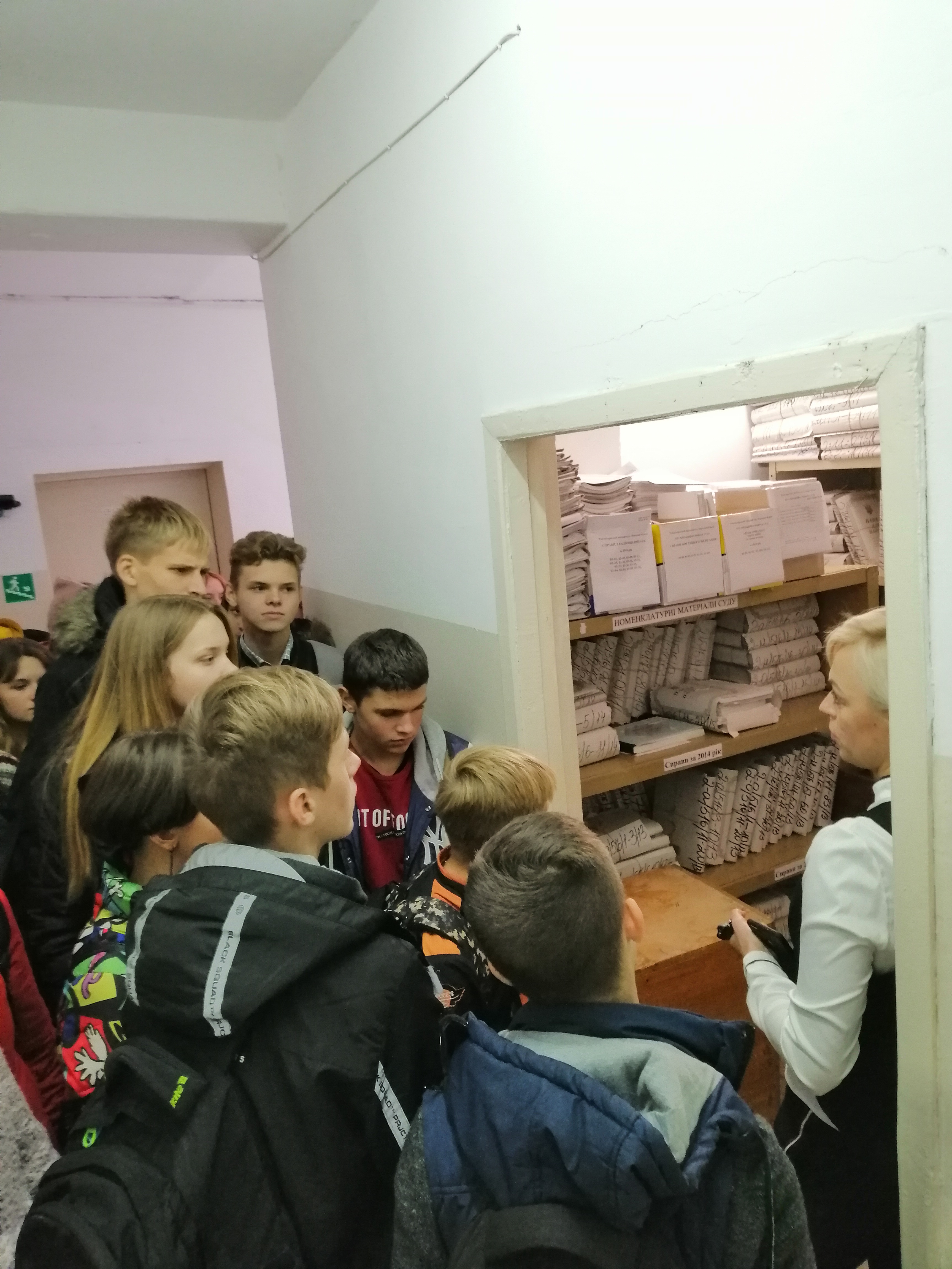 Далі учні відвідали архів суду, де вони ознайомились зі специфікою роботи архіву суду, терміни зберігання справ та документів, порядок видачі документів, порядок знищення справ з архіву суду.