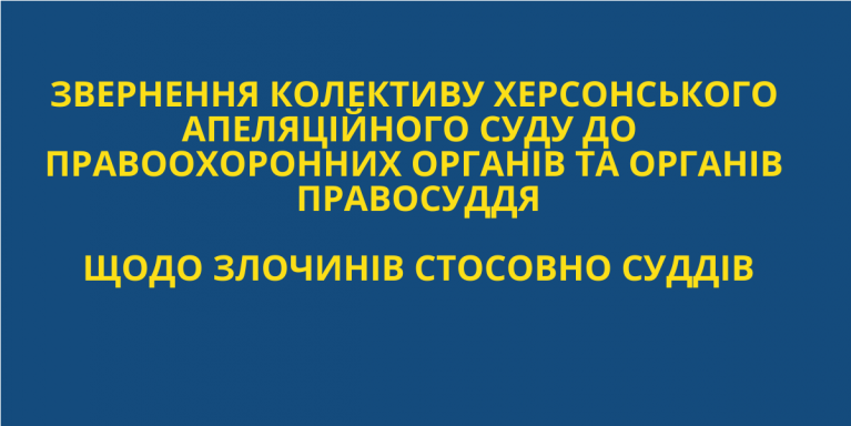 ЗВЕРНЕННЯ КОЛЕКТИВУ ХЕРСОНСЬКОГО АПЕЛЯЦІЙНОГО СУДУ ДО ПРАВООХОРОННИХ ОРГАНІВ ТА ОРГАНІВ ПРАВОСУДДЯ
