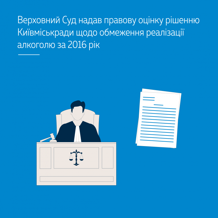 Верховний Суд у складі колегії суддів Касаційного адміністративного суду переглянув у касаційному порядку адміністративну справу за позовом до Київської міської ради про визнання протиправним і скасування рішення Київради від 22 вересня 2016 року № 19/1023 «Про обмеження реалізації алкогольних, слабоалкогольних напоїв та пива у стаціонарних об’єктах торгівлі в м. Києві».